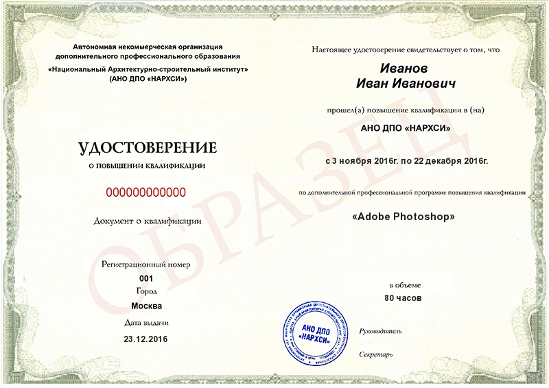 Учебный план программы повышения квалификации «Adobe Photoshop»