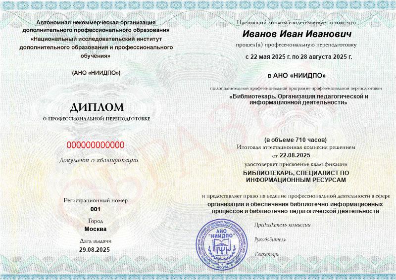 Студент, желающий поступить в АНО «НИИДПО», должен предоставить справку из образовательной организации. Независимо от срока окончания обучения по программе дополнительного образования, диплом о профпереподготовке выдаётся только после предъявления документа о получении среднего профессионального или высшего образования.