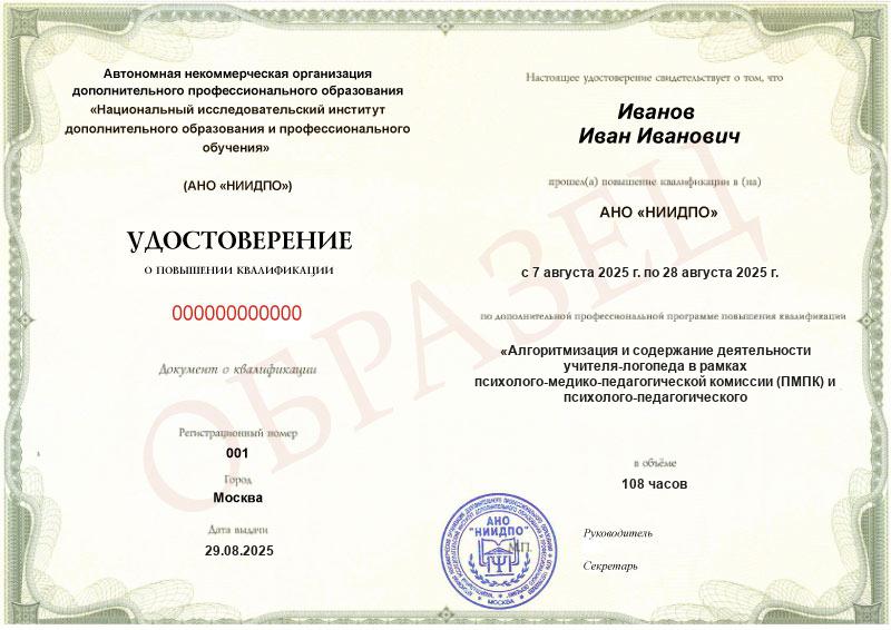 Да, документы оформляются на бланках с защитой от подделок, заполняются на русском языке, в них ставится печать АНО «НИИДПО».