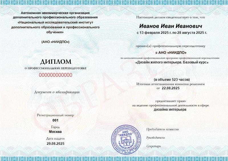 Дизайн жилого интерьера. Базовый курс (523ч)