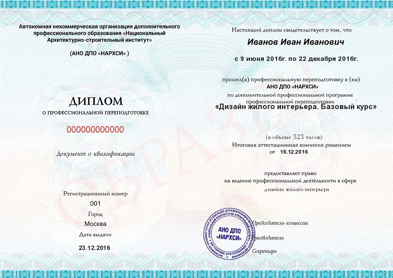 Диплом о профпереподготовке (для программ длительностью от 250 ч.)