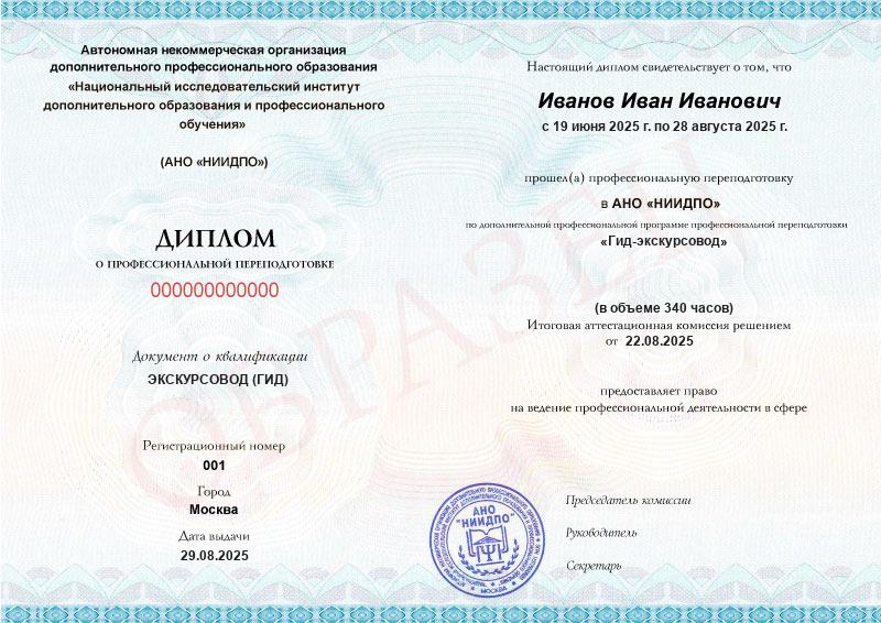 - Квалификация: ЭКСКУРСОВОД (ГИД)
