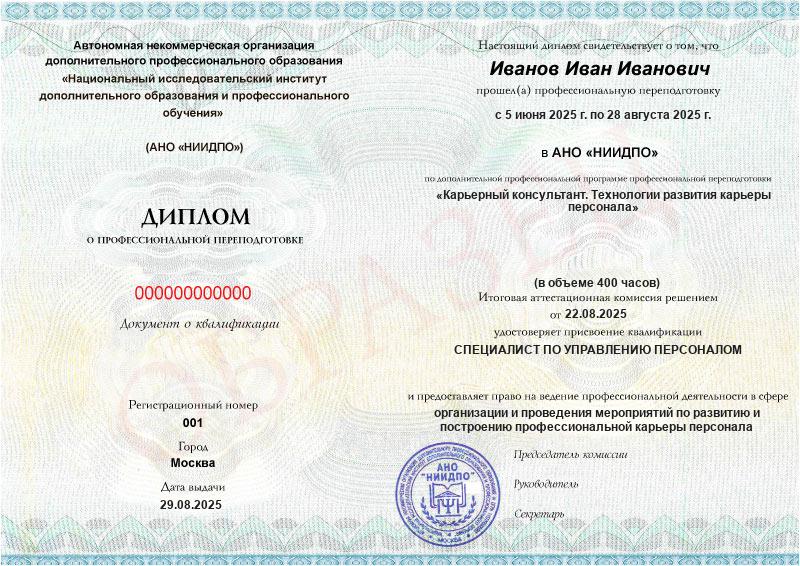Диплом АНО «НИИДПО» принимают работодатели и аттестационная комиссия.