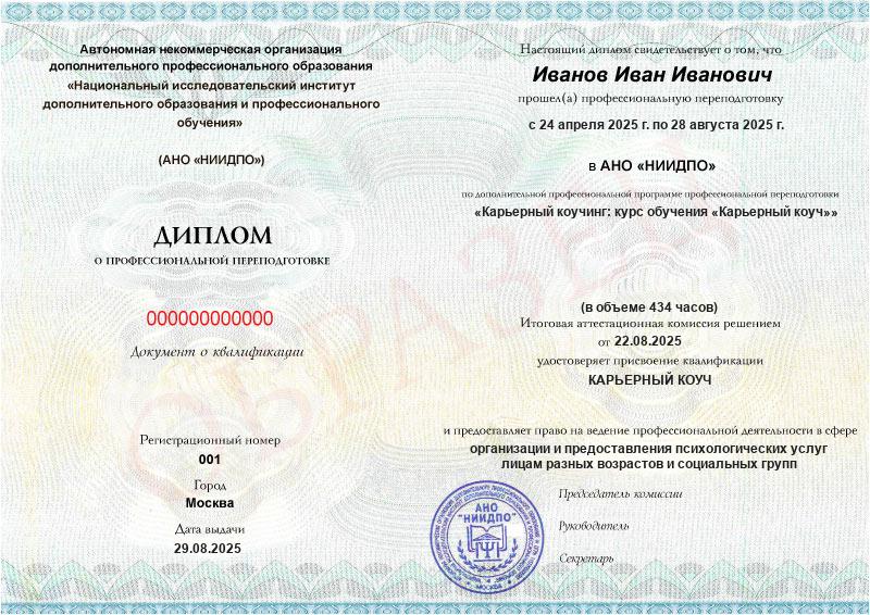Да, выданный АНО «НИИДПО» диплом предоставляет вам право на ведение профессиональной деятельности в соответствии с квалификацией.