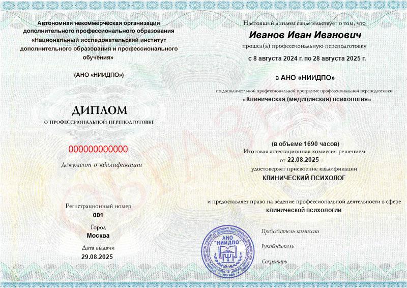 - Диплом московского института с государственной лицензией.