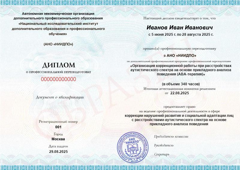 Обзор программы профессиональной переподготовки «Организация коррекционной работы при расстройствах аутистического спектра на основе прикладного анализа поведения (АВА-терапия)»