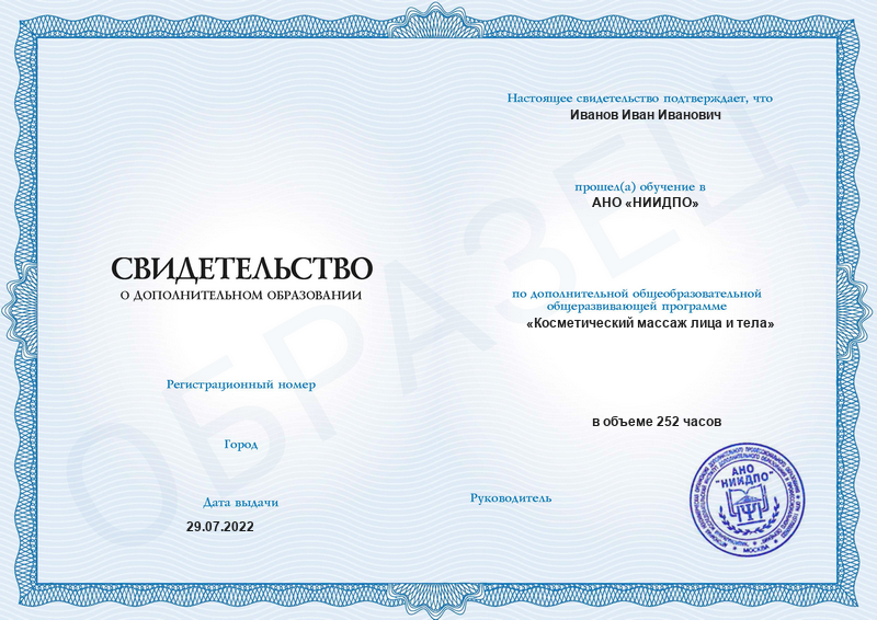 Обзор программы профессиональной переподготовки «Косметический массаж лица и тела» с присвоением квалификации «Мастер косметических видов массажа»