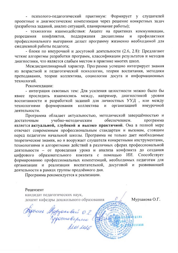 Читайте рецензию доцента кафедры дошкольного образования ФГАОУ ВО «Государственный университет просвещения», кандидата педагогических наук Мурзаковой О. Г.