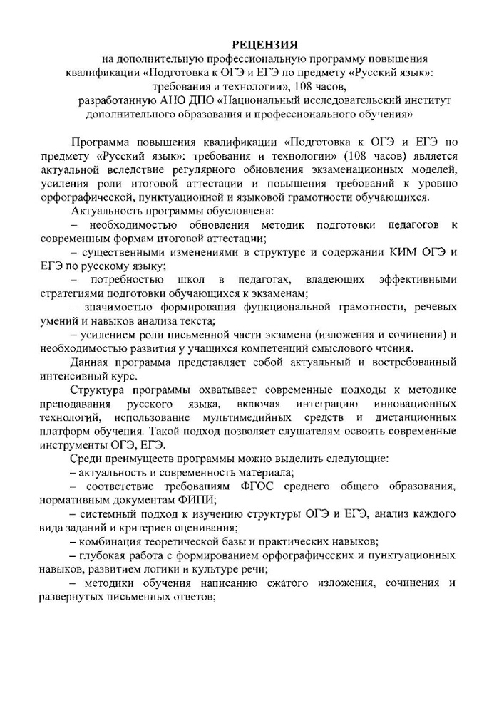 Обзор программы повышения квалификации «Подготовка к ОГЭ и ЕГЭ по предмету «Русский язык»: требования и технологии»