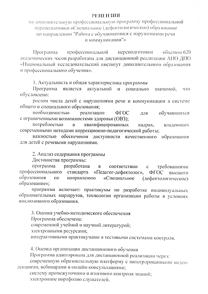 Я прошла дистанционное обучение в АНО «НИИДПО» по программе «Специальное (дефектологическое) образование по направлению «Работа с обучающимися с нарушениями речи и коммуникации» и благодарю всю команду данной организации за отлично организованный процесс обучения. Учиться было интересно, училась с удовольствием. Дистанционно учиться очень удобно. Можно заниматься в любое свободное время. Мне понравилась хорошая подача учебного материала, все доступно и понятно, всегда можно вернуться к пройденному, повторить, улучшить свои результаты. Если что-то не успеваешь, есть возможность скорректировать темп обучения. Квалифицированные преподаватели, обстоятельно оценивают практические задания, помогают разобраться в ошибках и недочетах. Грамотные вежливые специалисты сопровождают на всем протяжении обучения. Я решила продолжить обучение в АНО НИИДПО еще по одной программе. Получение дополнительной квалификации дает мне возможность работать по новой специальности.