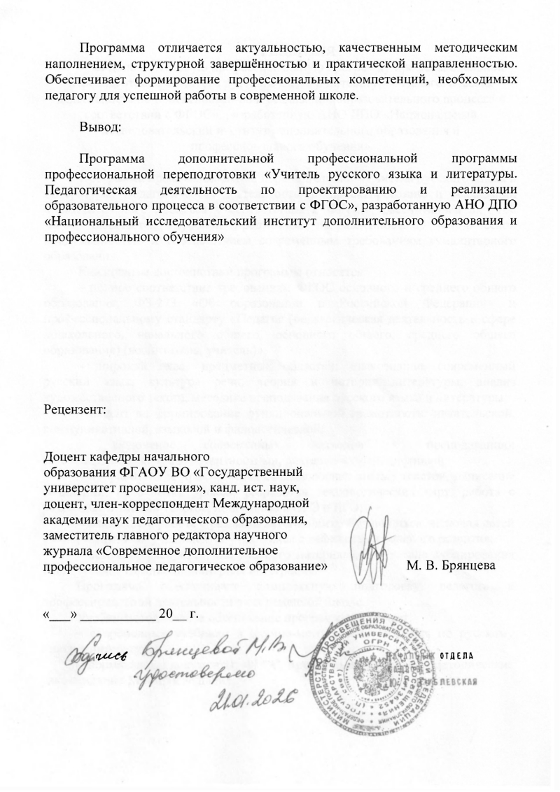 Обзор программы профессиональной переподготовки «Учитель русского языка и литературы. Педагогическая деятельность по проектированию и реализации образовательного процесса в соответствии с ФГОС» с присвоением квалификации «Учитель русского языка и литературы»