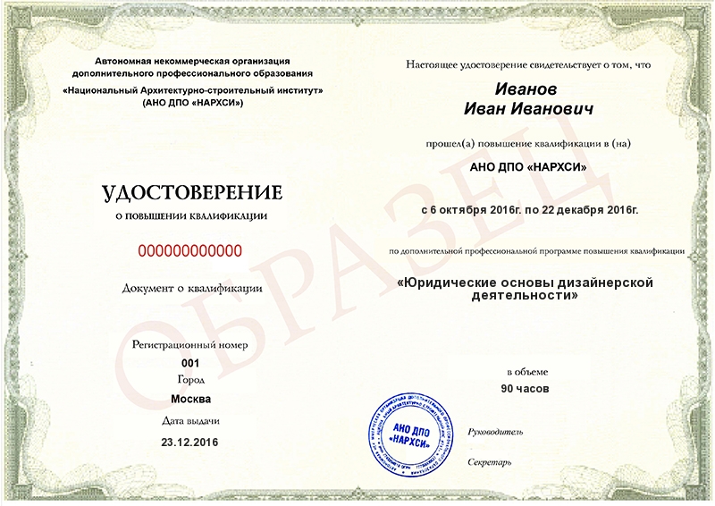 Да, документы оформляются на бланках с защитой от подделок, заполняются на русском языке, в них ставится печать АНО «НИИДПО».